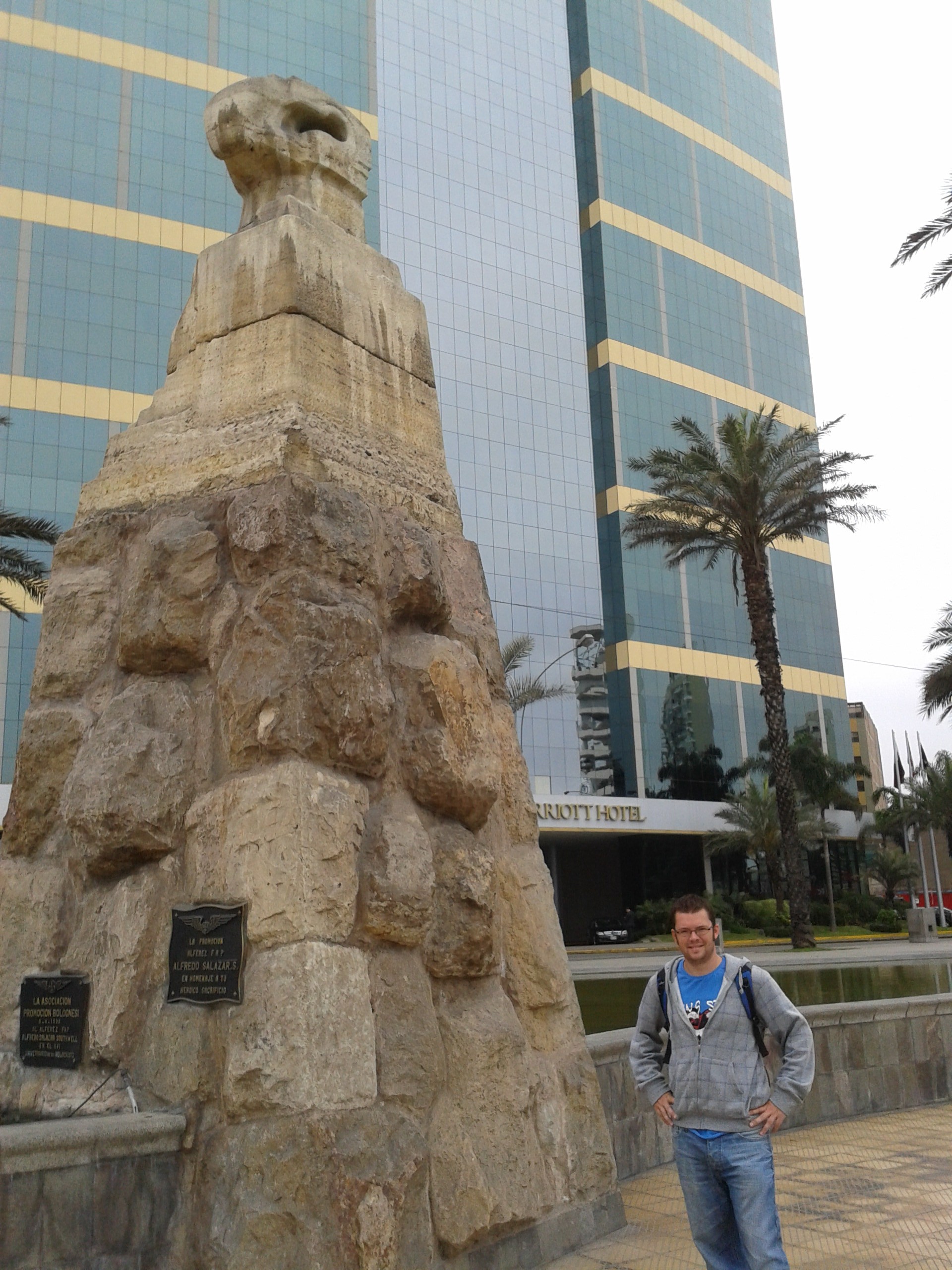 Our hostel was fairly basic and a Faulty Towers ‘Manuel” type of man was working on the front desk. No english and not a clue what room we were supposed to be in. Eventually he found a key for a room and showed us in. Since we were only staying one day in Lima we decided just to explore the Mirafores area. This is the largest suburb of Lima and also the most civilised and safe by the look of the rest of Lima. We walked around and found a big area with tourist shops and art galleries. Some very cool stuff. We took a walk to the cliff side which over looks the beach that was full of surfers. Lima is known as the cloudy city and it certainly did not dissapoint, it was very cloudy most of the day until we took a tour of an old ruin in the city. This was a huge pyramid used by pre Incan people of Lima in 400BC. They also had a peruvian hairless dog walking around the ruin, a very strange breed of dog, no hair what so ever. He was really friendly though, a right poser. By this time the sun had come out and it was scorching so after the tour we walked back to the hostel. That night we went to the cinema on the cliff face of Miraflores. The film we saw was Taken 2 starring Liam Neeson, it was entertaining but pretty shit. At least they had the spanish in subtitles and had not dubbed the film like they seem to do with everything on tv. Bruce Willis talking to Samuel L Jackson in spanish just does not work for me. That night I didnt get much sleep because of the traffic outside. The taxi drivers have this really annoying habit of beeping their horns at everyone they see who they think might need a taxi, even if you’re across the street from them they’ll beep and beep. That night they kept beeping their horns all night long. At one stage, in my sleep deprived state, I swear I could hear them playing a symphony. An orchestra of cars, now thats an idea.