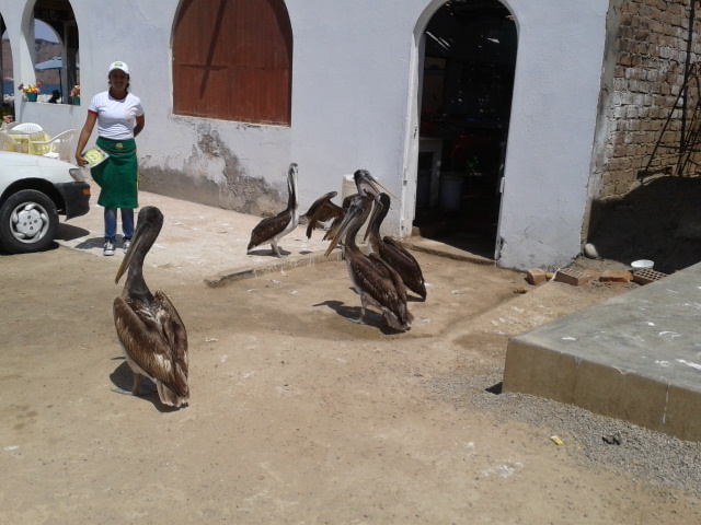 In the afternoon we took a tour to the national park which is just a desert really. First time I’ve ever seen a park like this. The main export in Peru is salt and this was at one time the biggest salt producing place here. The road which at first glance looks like a normal, albeit bumpy asphalt road, is actually made entirely out of pure salt. The black colour comes from the tires that have passed over it over time. The tour took us to the famous Red beach on which the sand is as red as a terracotta pot, foxy as Susan would say. Then the tour took us to a local restaurant. The usual South American “I recommend this restaurant, they give you a special deal because you’re on this tour” malarky. Needless to say we had fallen for this before and had known to bring our own lunch with us this time. Ham sandwiches, always good. The restaurant was in a tiny village where obviously they survived on fishing and mostly tourists. Once again Pelicans seemed to have taken this place over too. As we were walking back to the bus, I was looking at something and walked straight into one of these massive Pelicans, luckily the Pelican just looked at me as if to say “watch where you’re walking Gringo”.