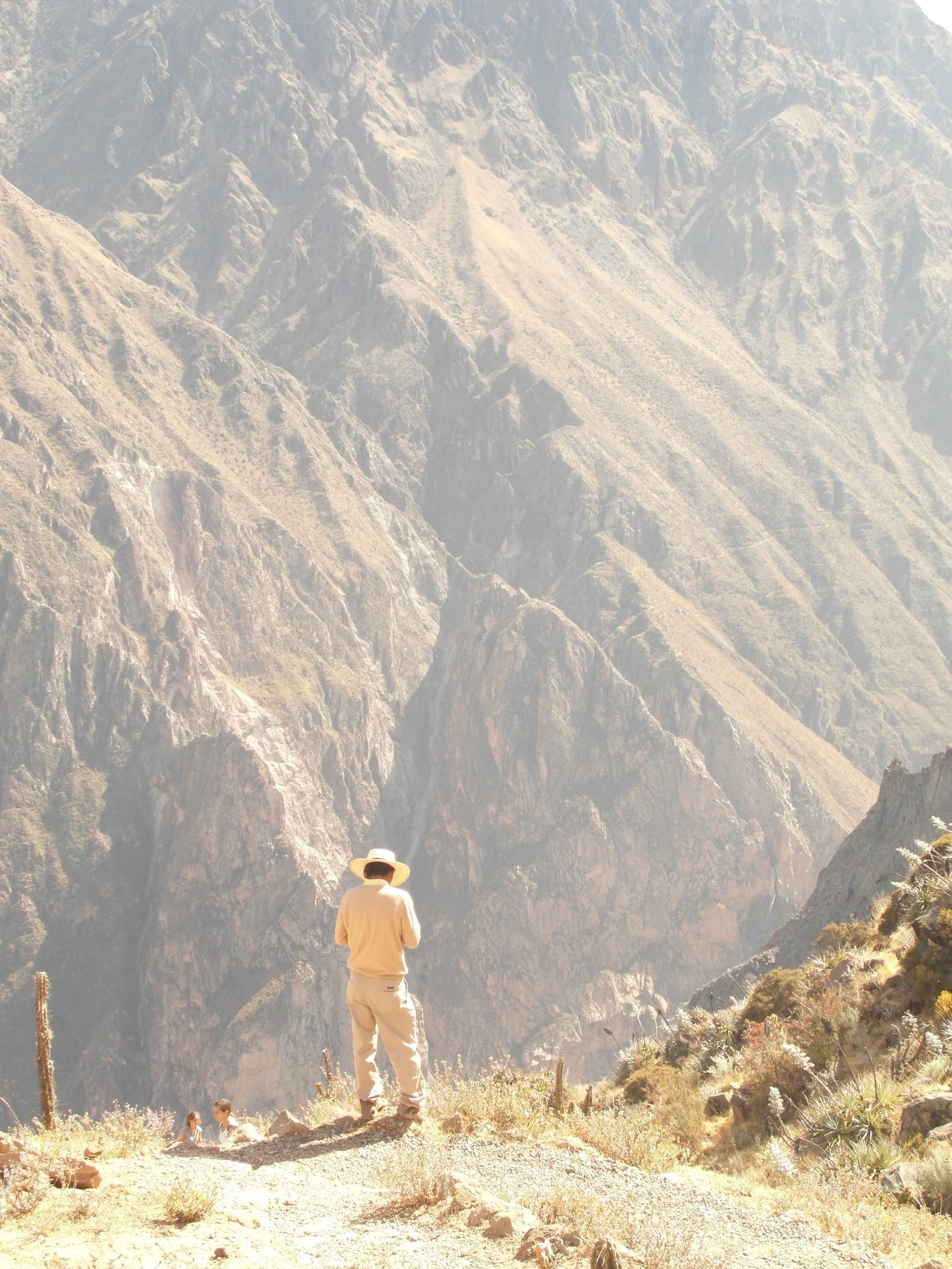 In the garden of our hotel here lived a large turtle. He was named Paco and was a very friendly fellow. He would slowly follow you around looking for things to eat, I think he was fairly spoiled because Susan gave him a piece of orange and he wouldn’t even eat it. Picky bugger. We went to bed early that night because we had to get up at 2:45am to be collected at 3am. We had booked a tour to Colca Canyon to see the deepest canyon in the world and the large Andean Condor that nest there. On a good day you can see 100’s of them flying around. The best time to see them is between 8 and 9 in the morning and so we had to get up early to make a 5 hour drive to the canyon. The drive was fairly shit to say the least. Once we got to the canyon, we made a short half hour hike up to the main viewing platform which was 4,160 metres above sea level, and you could really feel the altitude kick in. Our guide told us there is a small village at the bottom of the canyon and the children from the village need to walk 3 hours to school and another 3 hours back everyday! We could barely see the village from our viewpoint. No wonder many of the children leave school early and just work at home or in their village. unfortunately it was one of those days when the Condors were not around. We did see 3 flying about so at least did get to see them. They are amazing creatures, so big. I would love to see a large group of them flying overhead.